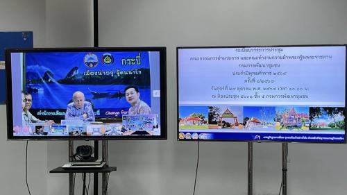 นายสุรศักดิ์ อักษรกุล อธิบดีกรมการพัฒนาชุมชน เป็นประธานการประชุมเตรียมความพร้อมการจัดงานทอดกฐินพระราชทาน กรมการพัฒนาชุมชน ประจำปี 2568 ผ่านระบบประชุมทางไกล Video Conference จากสำนักงานพัฒนาชุมชนกระบี่ โดยมีผู้บริหารกรม หัวหน้ากลุ่มงาน และพัฒนาการจังหวัดทั่วประเทศ เข้าร่วมรับฟังพร้อมเพรียงกัน โดยในส่วนของ สำนักงานพัฒนาชุมชนจังหวัดนครนายก ได้ร่วมประชุมพร้อมรายงานความคืบหน้าการเตรียมสถานที่และการอำนวยความสะดวกแก่ผู้เข้าร่วมงาน