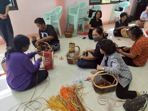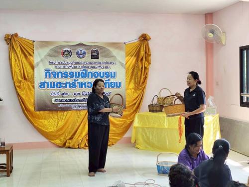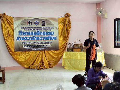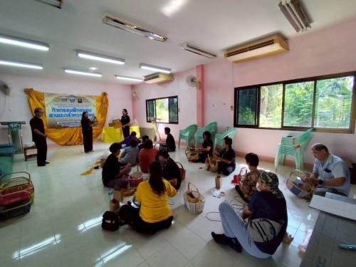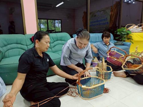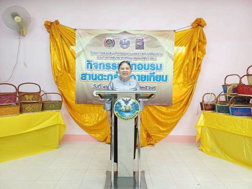 กิจกรรมฝึกอบรมสานตะกร้าหวายเทียม โดยมี นางสาวสุพิชฌาย์ ขาวทอง ผู้อำนวยการกลุ่มงานส่งเสริมการพัฒนาชุมชน เป็นผู้กล่าววัตถุประสงค์ในการดำเนินกิจกรรม พร้อมด้วยกลุ่มเป้าหมายประกอบด้วย ผู้นำอาสาพัฒนาชุมชน อาสาพัฒนาชุมชน และประชาชนภายในพื้นที่ร่วมกิจกรรมดังกล่าว