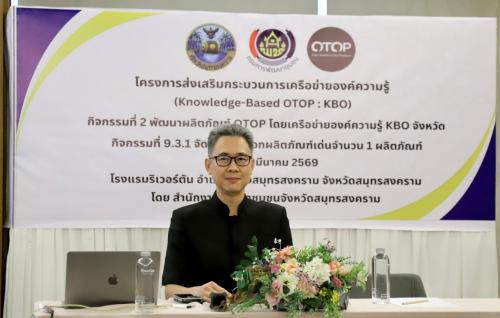 นายรนัสถ์ชัย พุ่มเจริญ รองผู้ว่าราชการจังหวัดสมุทรสงคราม เป็นประธานพิธีเปิดโครงการส่งเสริมกระบวนการเครือข่ายองค์ความรู้ (Knowledge - Based OTOP : KBO) กิจกรรมที่ 2 การพัฒนาผลิตภัณฑ์ OTOP โดยมีนางวาสนา ไขว้พันธุ์ พัฒนาการจังหวัดสมุทรสงคราม กล่าวรายงานถึงวัตถุประสงค์ของการดำเนินโครงการฯ พร้อมด้วยกลุ่มเป้าหมายประด้วย ผู้ผลิต ผู้ประกอบการ 20 กลุ่ม/ผลิตภัณฑ์, คณะกรรมการเครือข่ายองค์ความรู้ KBO จังหวัด จำนวน 20 คน, เจ้าหน้าที่สำนักงานพัฒนาชุมชนจังหวัด/อำเภอ จำนวน 20 คน ร่วมกิจกรรม
